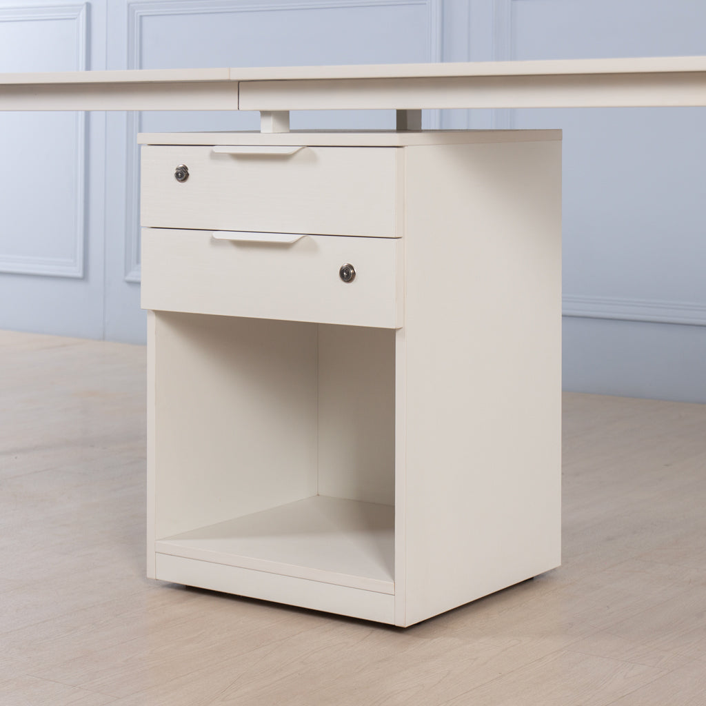 The Nexus workstation is designed to bring people together in a streamlined, professional workspace. Its elongated form provides ample room for multiple users, supported by integrated storage pedestals that keep essentials close at hand.